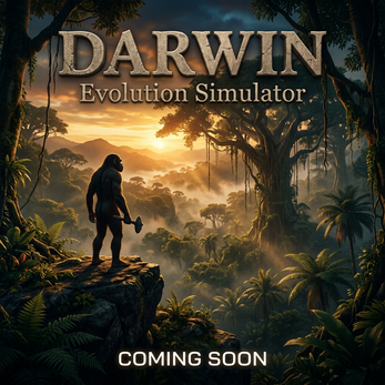 Darwin is an open-world evolution simulator set in the middle of the pacific ocean, on a secret US government sponsored Artificial island, with an environment based on Africa 10 million years ago. You don't play as a character — you play as time itself, watching the chimps in your enclosure evolve. Watch as your chimps develop tools, form tribes, build social hierarchies, and physically change across generations based on the choices they make and the world they survive.